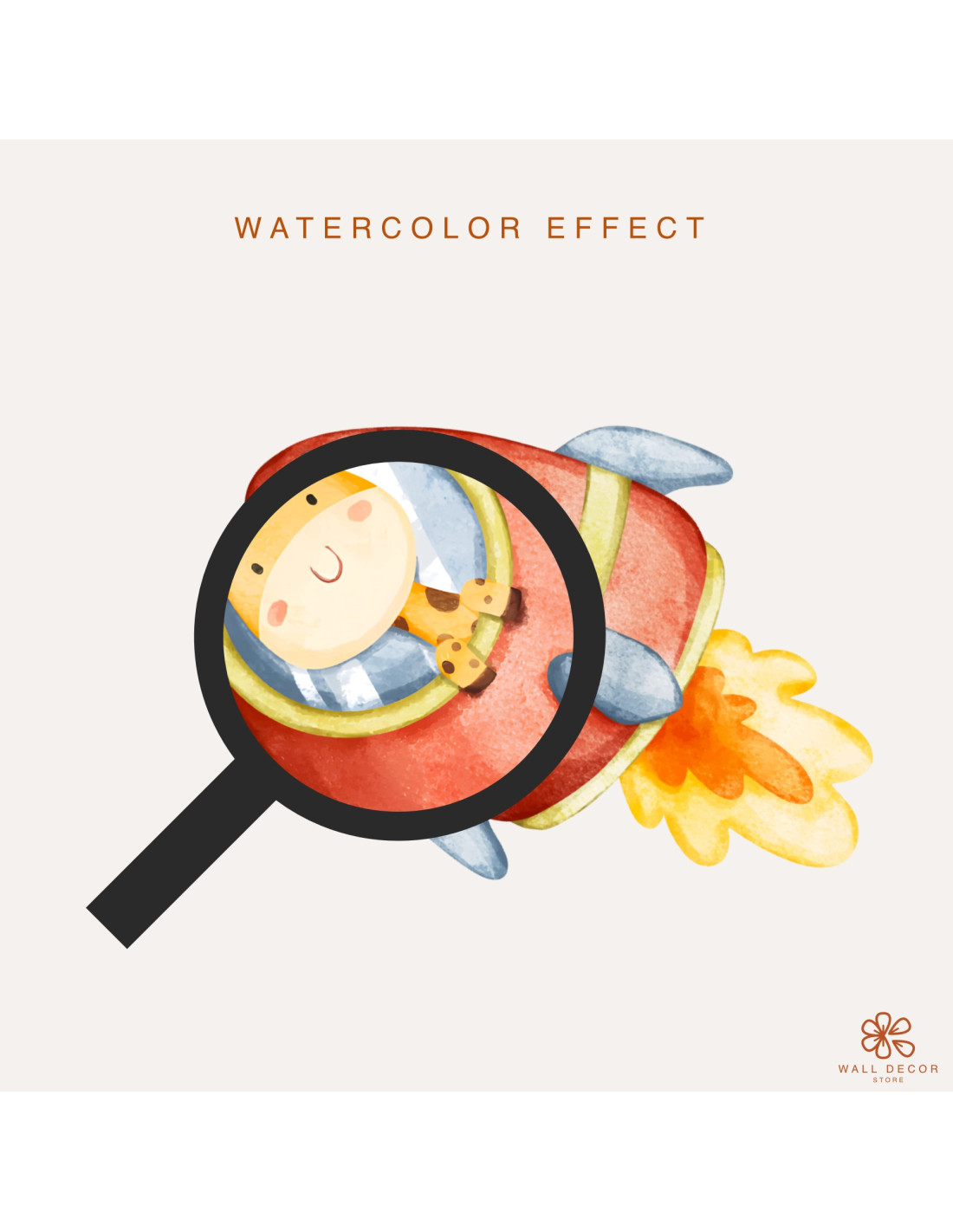 Un gruppo di teneri animali prende il volo a bordo di aerei, dirigibili e razzi, pronti per una fantastica avventura tra le nuvole. La serie Sky Animal Crew unisce gioco e immaginazione in illustrazioni in stile acquerello, dai colori morbidi e armoniosi. Elefantini, scimmiette, giraffe e altri piccoli piloti trasformano la parete in un cielo pieno di storie da inventare, dove ogni viaggio diventa un sogno e ogni giorno una nuova esplorazione.