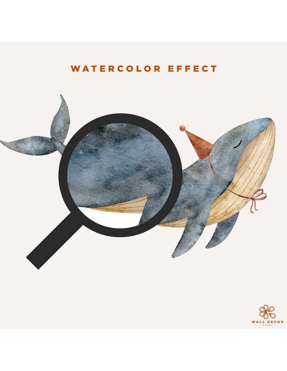 Include: 1 balena, 1 mongolfiera, 2 nuvole, 12 stelle in stile watercolor.